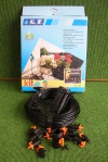 This kit allows water drip irrigation for up to 12 vases. pots or even parts of flower bed, and is connected directly into the water tap supply. The end line drippers can be regulated to change water supply.